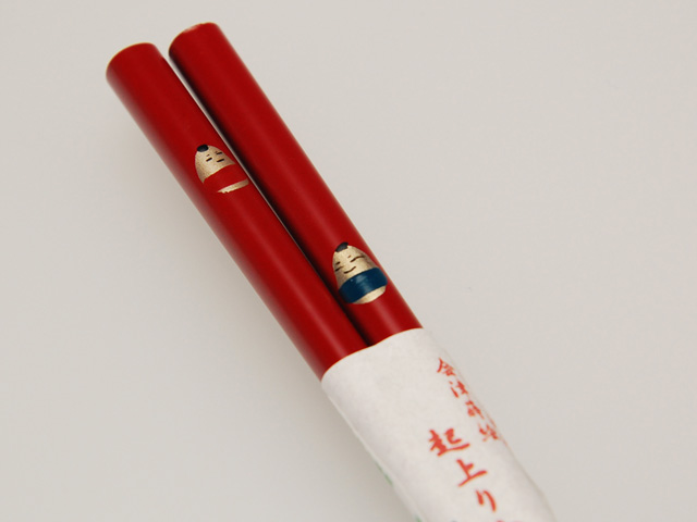 会津のシンボル起上り小法師の模様を描きました。裏面にも小坊師が付いています。