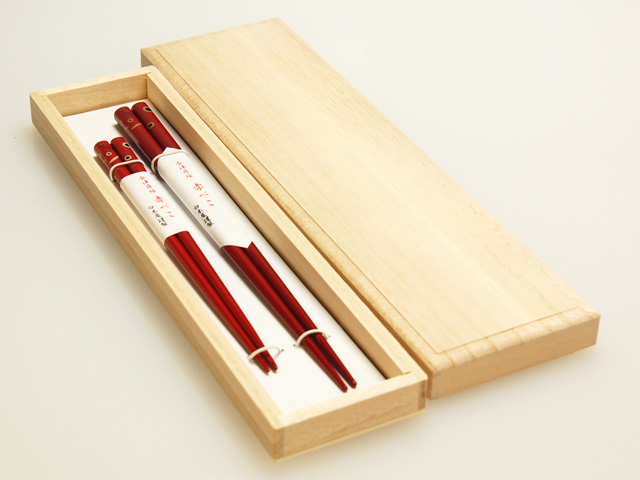 白木屋オリジナルの蒔絵を付けたママとベビーのための箸セット。 出産お祝いや1歳のお誕生日に。
