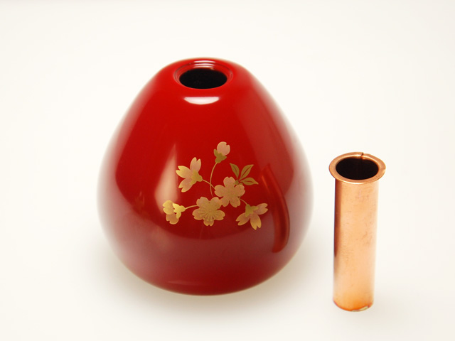ワンポイントの桜の蒔絵で、そのまま置物として楽しんでいただけます。後ろ正面にすれば、無地の一輪挿しとしてもお使いいただけます。