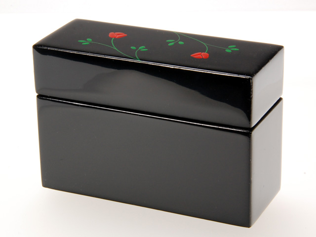 寸法、形状:内寸は、定型の名刺が入る大きさです木地: 朴、シナ合板塗質: ツヤのある漆塗塗色: 黒蒔絵師:新田和恵日本製内張り:別珍(グレー) 外装:化粧箱に入れ、包装した状態でのお届けとなります。