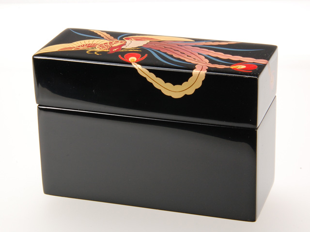 寸法、形状:内寸は、定型の名刺が入る大きさです木地: 朴、シナ合板塗質: ツヤのある漆塗塗色: 黒蒔絵師:佐藤直樹日本製内張り:別珍(グレー) 外装:化粧箱に入れ、包装した状態でのお届けとなります。